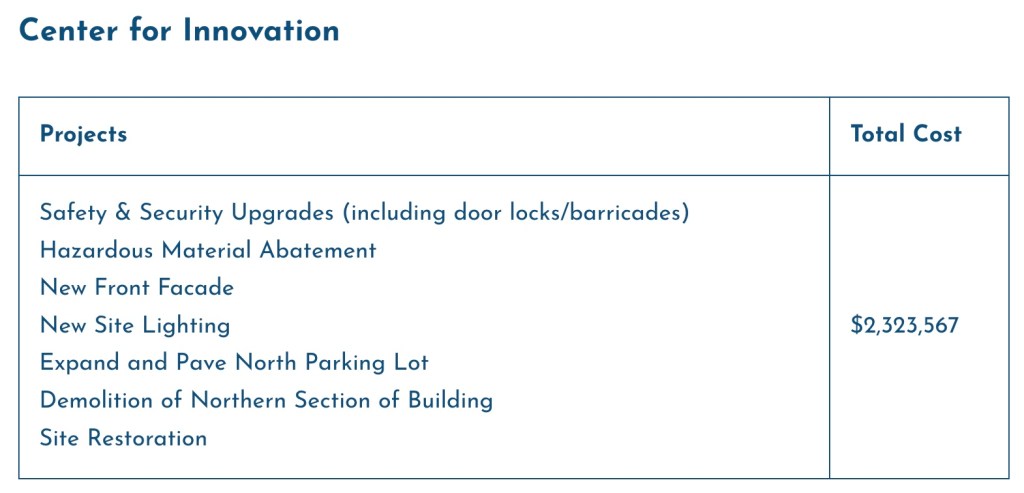 There are also funds in the bond to make improvements to the facade of the facility which, as you know, has become a major eyesore over the years.