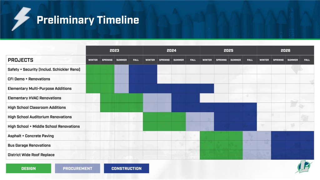 Wednesday evening, the Lapeer Community Schools Board of Education was presented with preliminary timeline information for the projects funded by the LCS Bond Proposal passed by voters in November 2022.