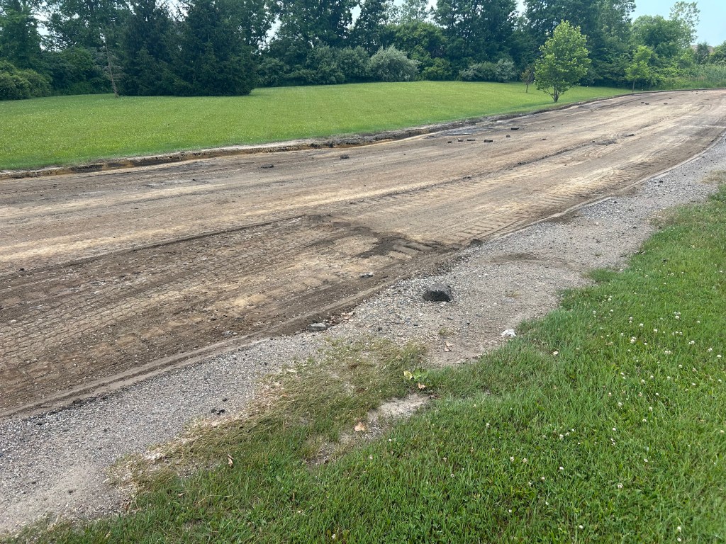 The milling work has begun on the driveway to Schickler Elementary School in preparation for the stretch to be repaved later this summer.
