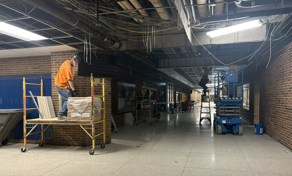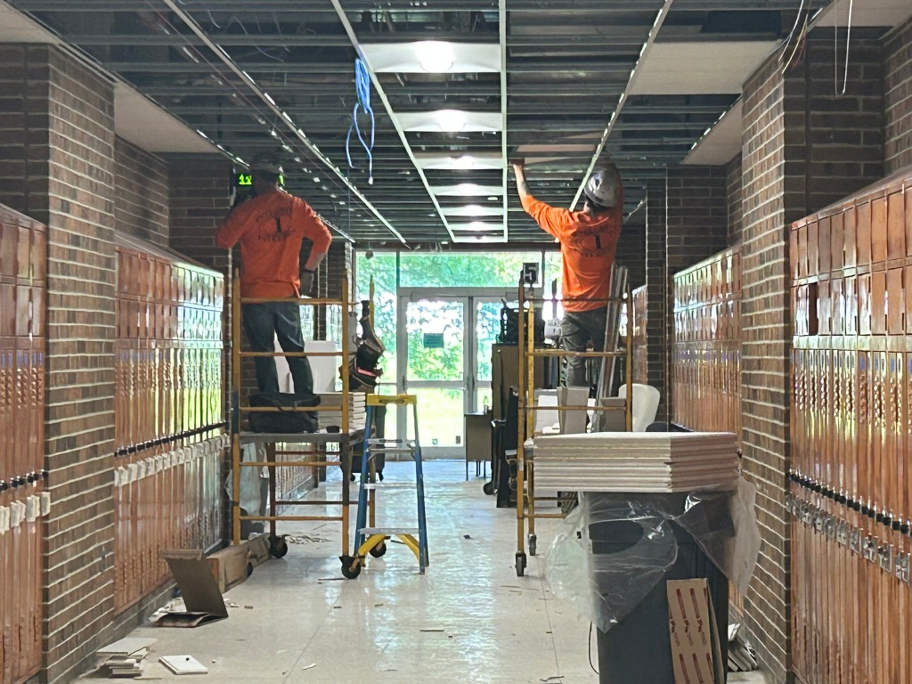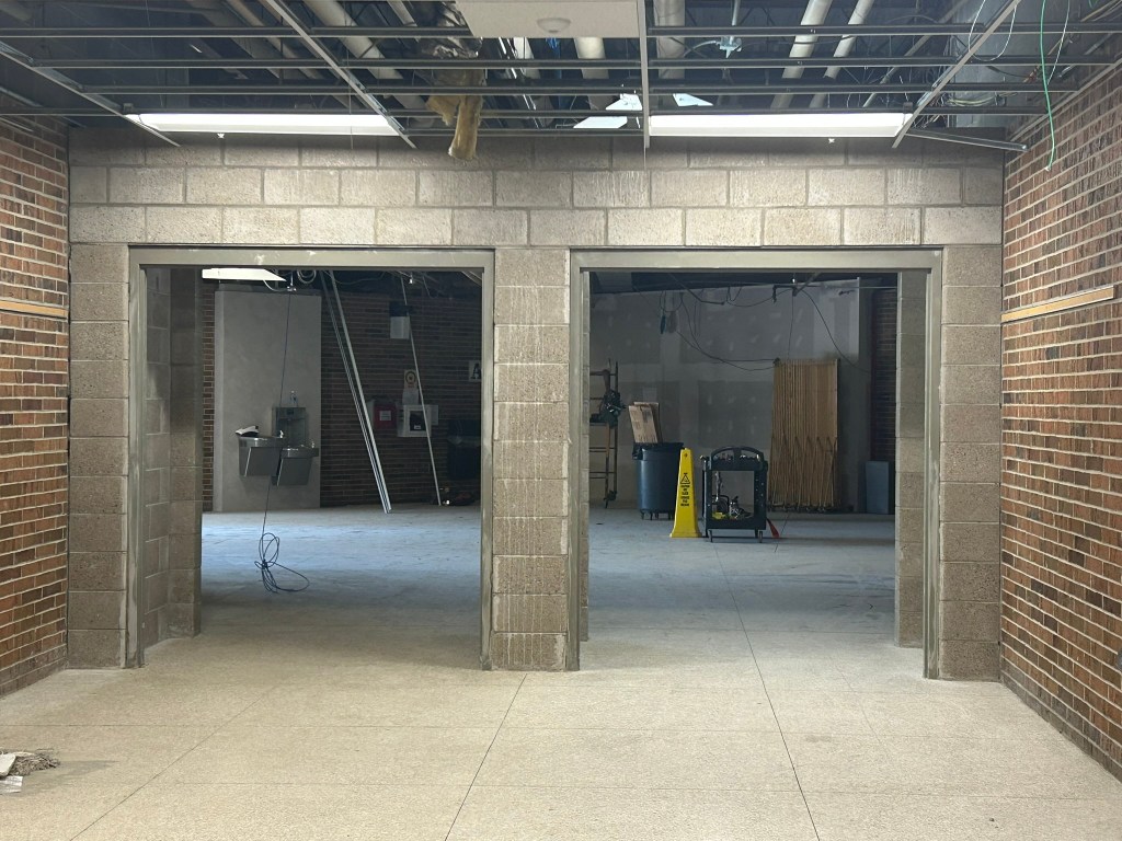 The interior work at Lapeer High School is continuing, including work on the locker rooms and on the entranceway to the auditorium.