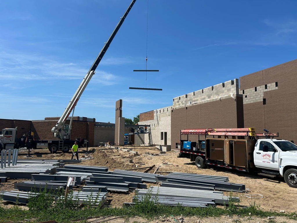 Steel beams were installed today at Lapeer High School as part of the new auditorium entrance.
